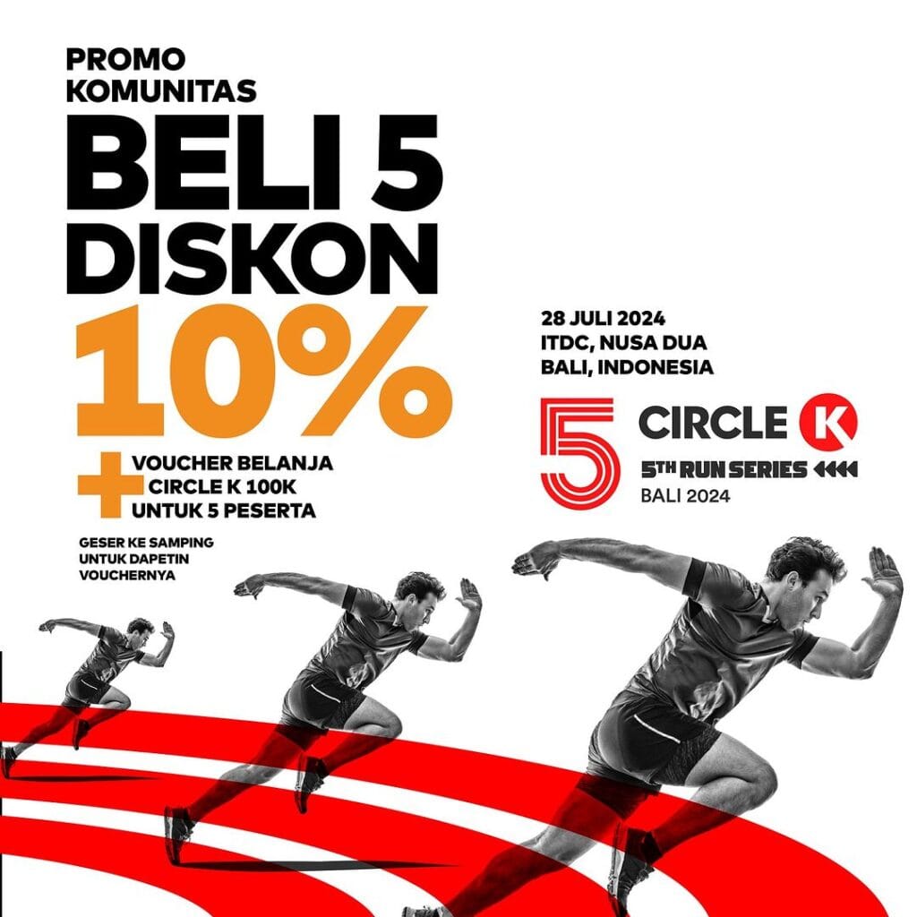 The Circle K 5th Run Series 2024 will be held at ITDC Peninsula, Nusa Dua, Bali on July 28th, with two running categories, 5 km and 10 km, aiming to attract a minimum of 2,500 participants. This event targets running communities, athletes, former athletes, employees, students, families, and tourists.