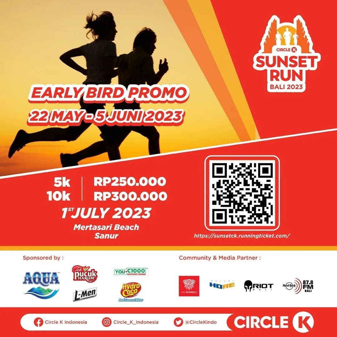 CK Sunset Run Bali 2023 will take place at Pantai Mertasari, Denpasar, Bali on July 1st. The event will start at 5 p.m., with a target of more than 3,000 participants and an audience target of up to 6,000 people. It is hoped that Circle K Run will serve as motivation for runners to improve their performance, thus becoming professional runners and participating in larger-scale competitions.