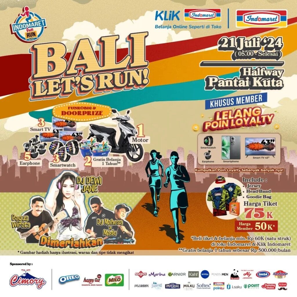 INDOMARET FUN RUN 2024 is back! Get ready to join the Indomaret Fun Run 2024, which will be held in 5 cities across Indonesia, including Bali.