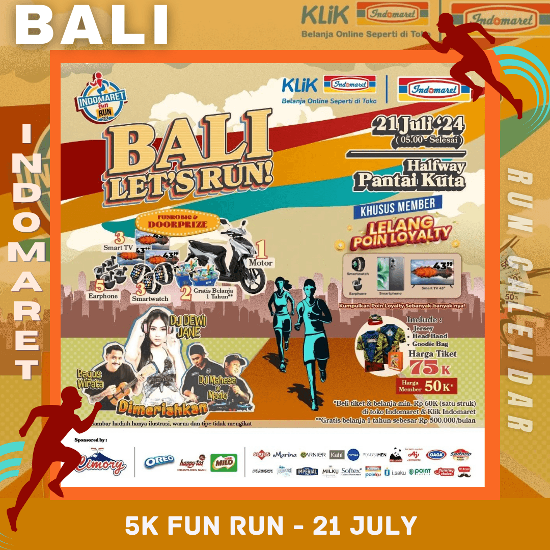 INDOMARET FUN RUN 2024 is back! Get ready to join the Indomaret Fun Run 2024, which will be held in 5 cities across Indonesia, including Bali.