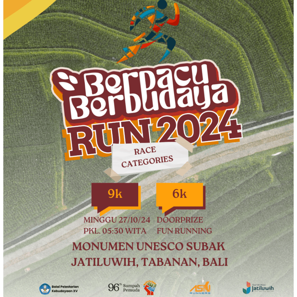 Berpacu Berbudaya Run 2024 invites participants to celebrate the 96th anniversary of Sumpah Pemuda by running through the Subak Jatiluwih area, a UNESCO-recognized cultural heritage site. In this event, participants can choose between a 9k or 6k route, while enjoying the stunning views of terraced rice fields and Jatiluwih’s hills, breathing in the fresh mountain air, and experiencing the warmth of the local community that continues to preserve its traditions.