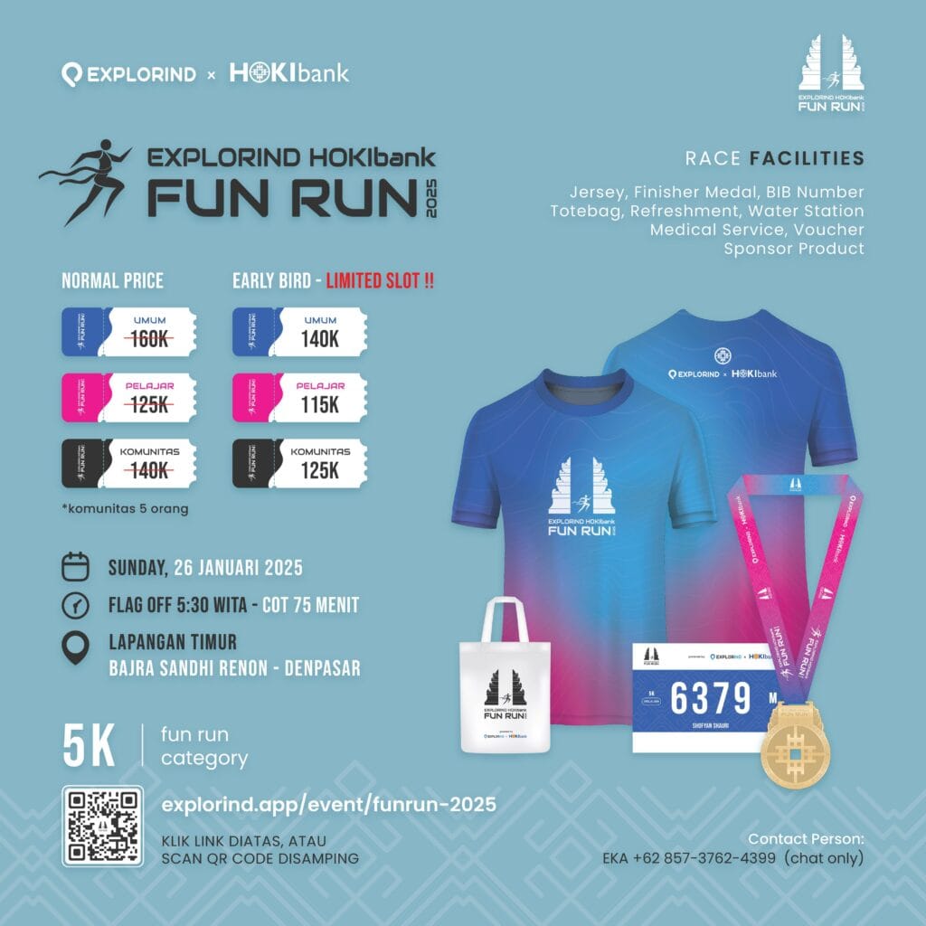 EXPLORIND HOKIbank FUN RUN 2025 is an exciting running event organized by Explorind in collaboration with HOKIbank. This event will be a special moment for runners from various backgrounds, including high school students and the general public, as well as local and international visitors.