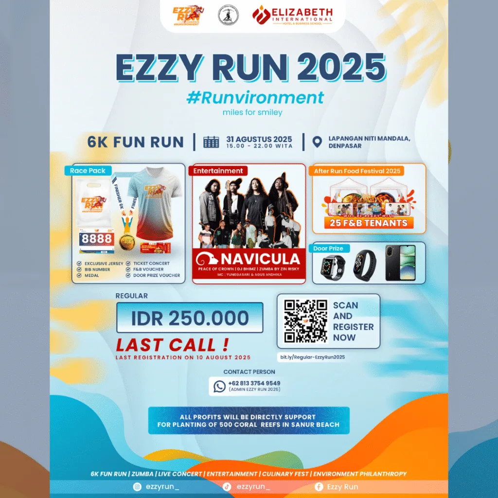 Beyond the run, Ezzy Run 2025 will also feature special performances by Navicula, Peace of Crown, DJ Bhimz, and a Zumba session with Zin Risky. This lineup is designed to deliver an enjoyable experience from start to finish, combining the spirit of sports with captivating live music.