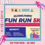 The Glowlympic Fun Run will take place on December 15, 2024, at Udayana University’s Sudirman Campus in Denpasar. Beyond enjoying a colorful and energetic 5K route, participants will also receive exciting benefits, including an exclusive jersey, a prestigious medal, cool goodies, a special race pack, refreshing beverages, and complimentary race photos to capture your memorable moments.