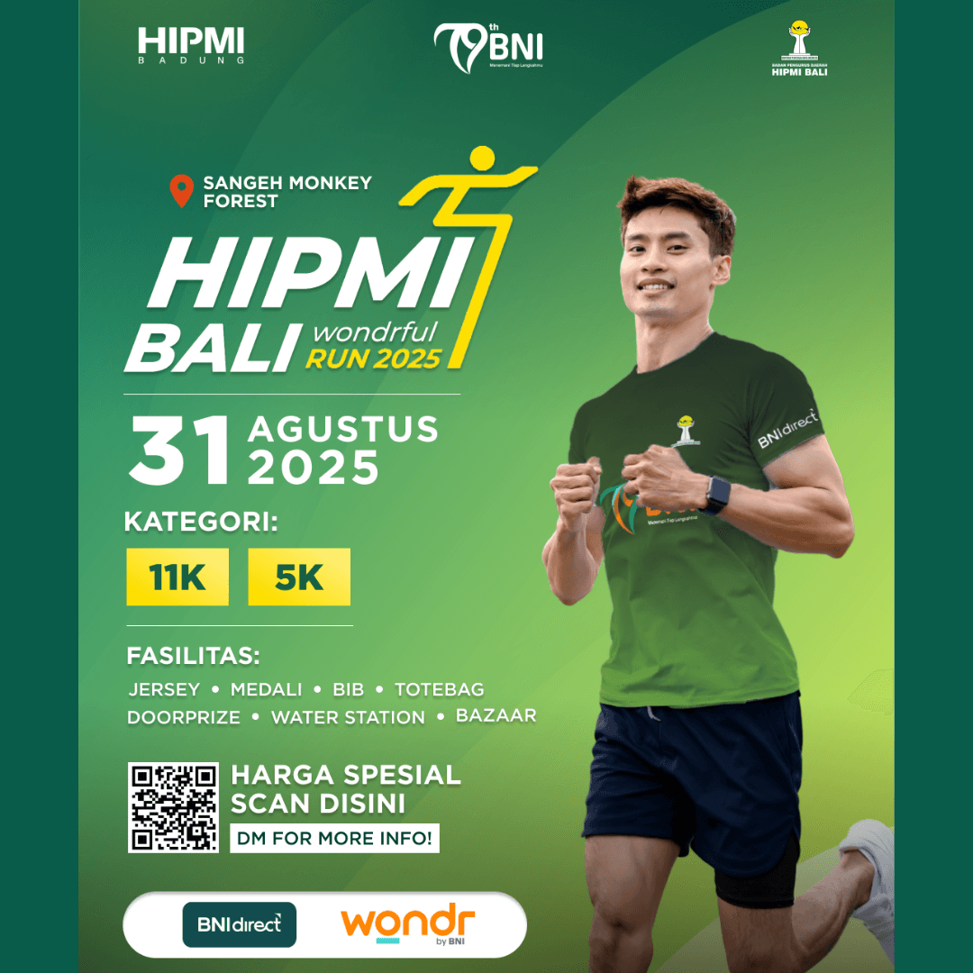 The run will take place on Sunday, August 31, 2025, at the Entrance Gate of Monkey Forest Sangeh, Badung – Bali. Starting from 04:30 AM to 12:00 PM (WITA), HIPMI Bali wondrful RUN 2025 aims to be a collective step in promoting the incredible potential of Bali one stride and one smile at a time across every finish line.