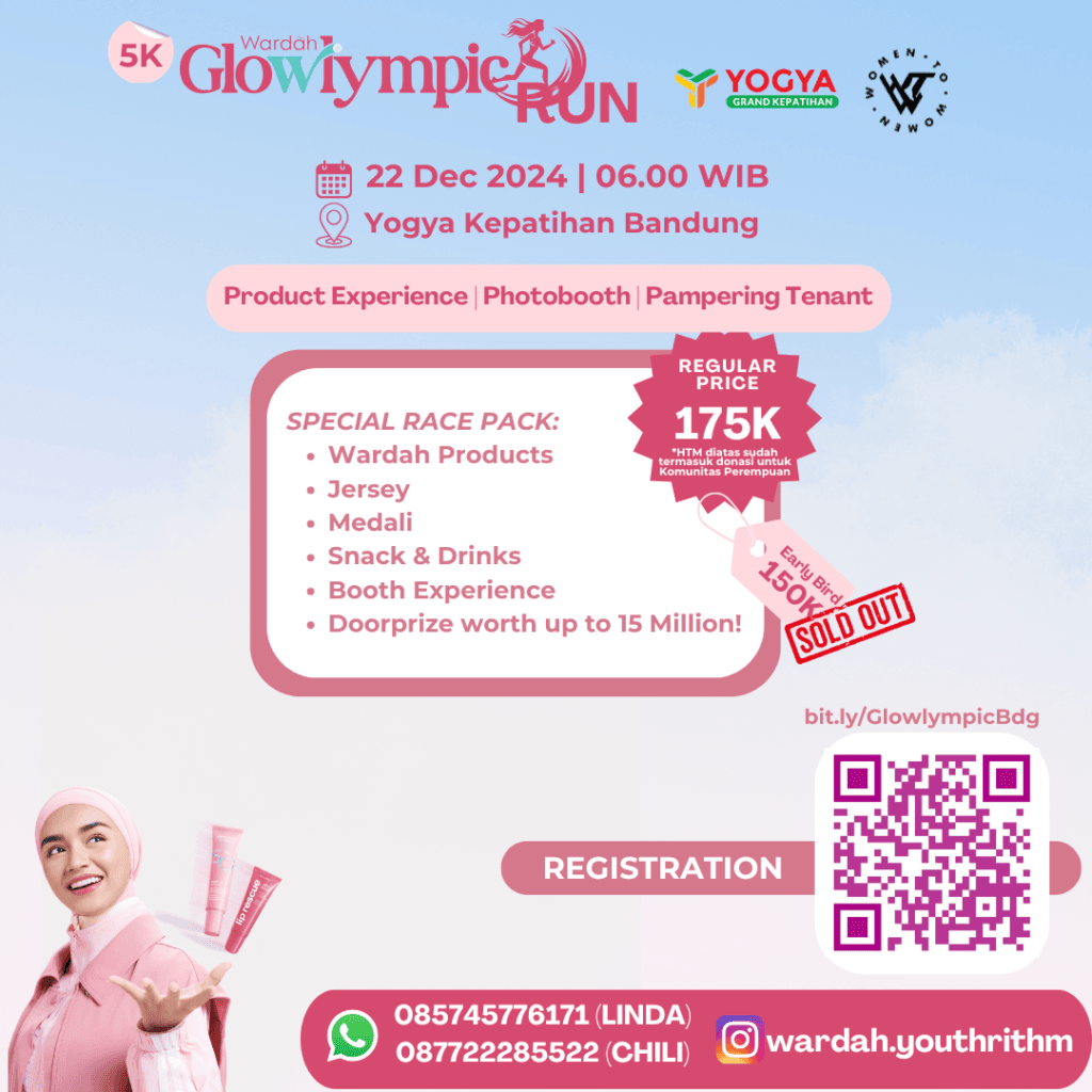 Don’t miss the chance to inspire and celebrate together at the Wardah Glowlympic Run 5K. Get ready to shine, run, and embrace a unique experience to close the year on a high note!