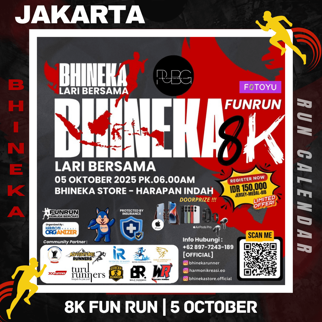 So, what are you waiting for? Register now, invite your friends, family, and community, and be part of an incredible running experience full of energy, togetherness, and excitement at Bhineka Fun Run 8K!