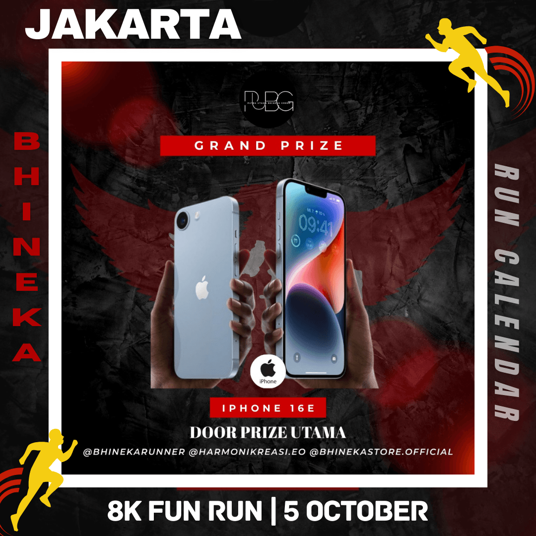 What makes it even more exciting is that Bhineka Fun Run 8K comes with special grand prizes you don’t want to miss! There will be one iPhone 16E, five Android smartphones, and many other attractive prizes waiting for lucky participants. This golden opportunity to win big rewards will surely boost your excitement for joining the event.