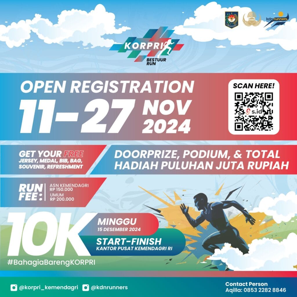 Don’t miss out on this opportunity! Register now and join the excitement of KORPRI Bestuur Run 2024. Let’s celebrate unity and healthy living together with the KORPRI community and the public!
