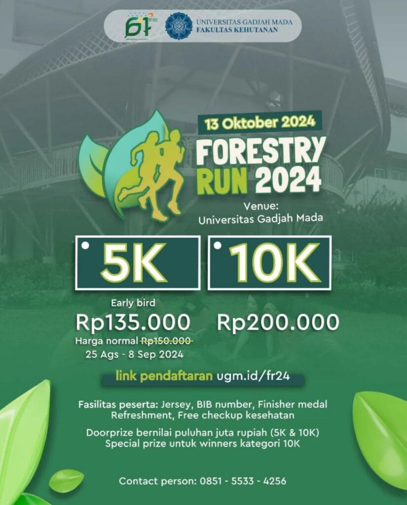 π²πββοΈ Escape the hustle and find your rhythm in nature! Forestry Run 2024 is hosted by Gadjah Mada University on 13th October 2024. Join us for a forest run where every step is an adventure and every breath is fresh. Letβs embrace the trails and the beauty that surrounds us! πβ¨. Lace up your shoes and inhale that fresh air. Donβt miss out and donβt forget to register !!