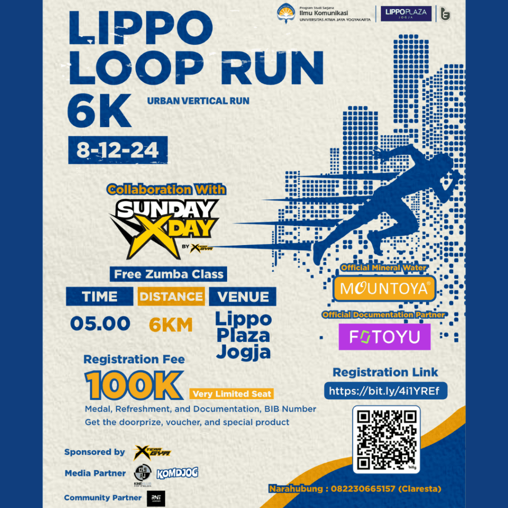 Lippo Loop Run 2024 is a unique fun run event that combines the experience of running through both outdoor and indoor routes. Taking place on December 8, 2024, at Lippo Plaza Yogyakarta, this event offers an exciting challenge with its “loop” concept, allowing participants to enjoy diverse atmospheres—from the refreshing outdoor environment to the dynamic comfort of indoor spaces.