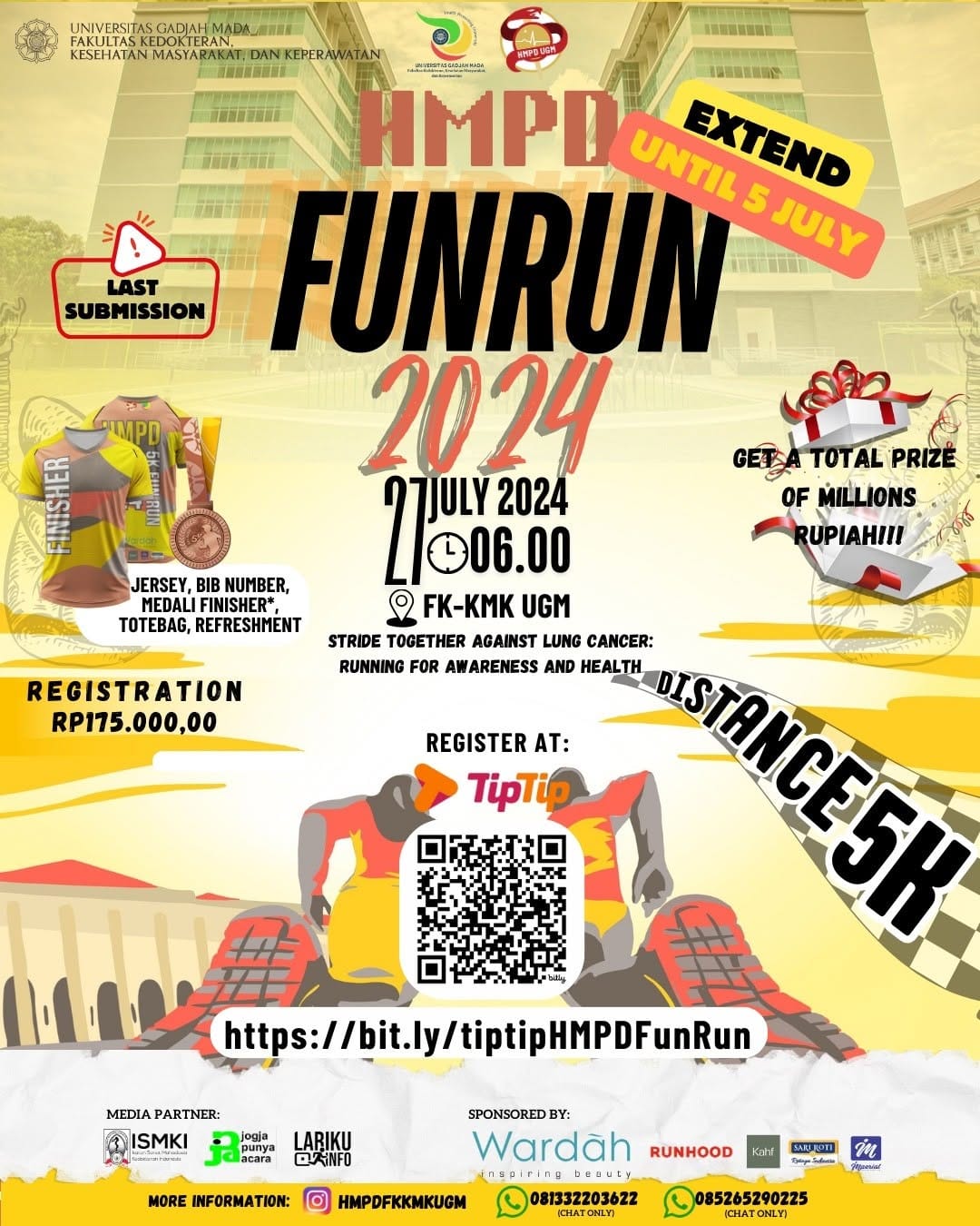The HMPD (Medical Student Association) at the Faculty of Medicine, Public Health, and Nursing – Universitas Gadjah Mada is hosting the HMPD Fun Run 2024 to promote awareness and support for lung health.