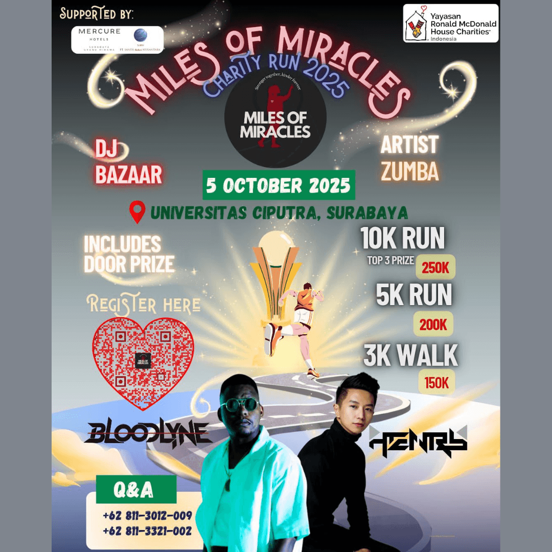 Invite your friends, family, and community to join Miles of Miracles: Charity Run 2025. Let every step you take be a gesture of care, because every kilometer covered can bring change and hope to children in need.