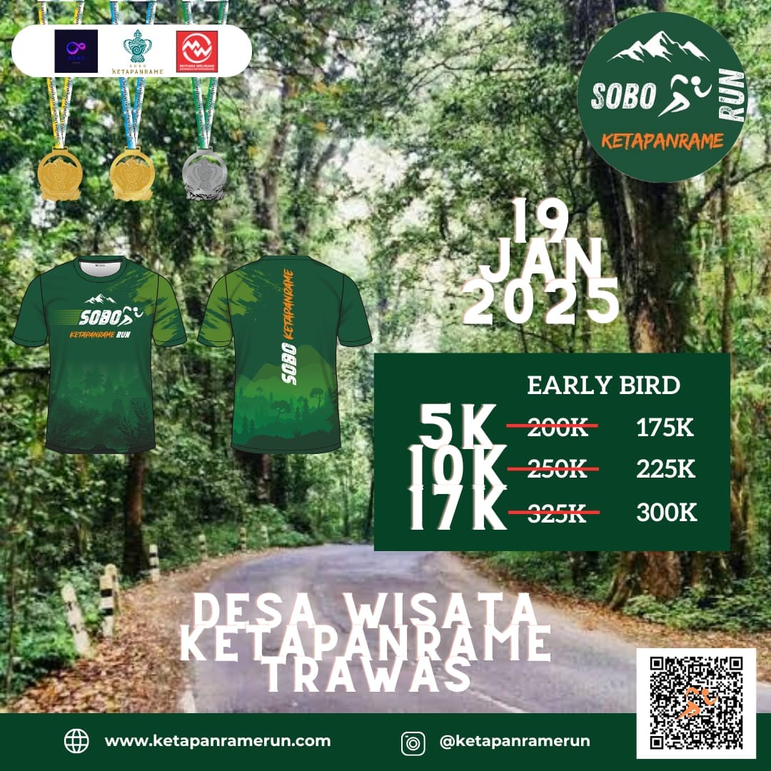 Don’t miss this opportunity to enjoy stunning natural scenery while challenging yourself in this exciting race. Register now and be part of the unforgettable experience at Sobo Ketapanrame Run 2025!