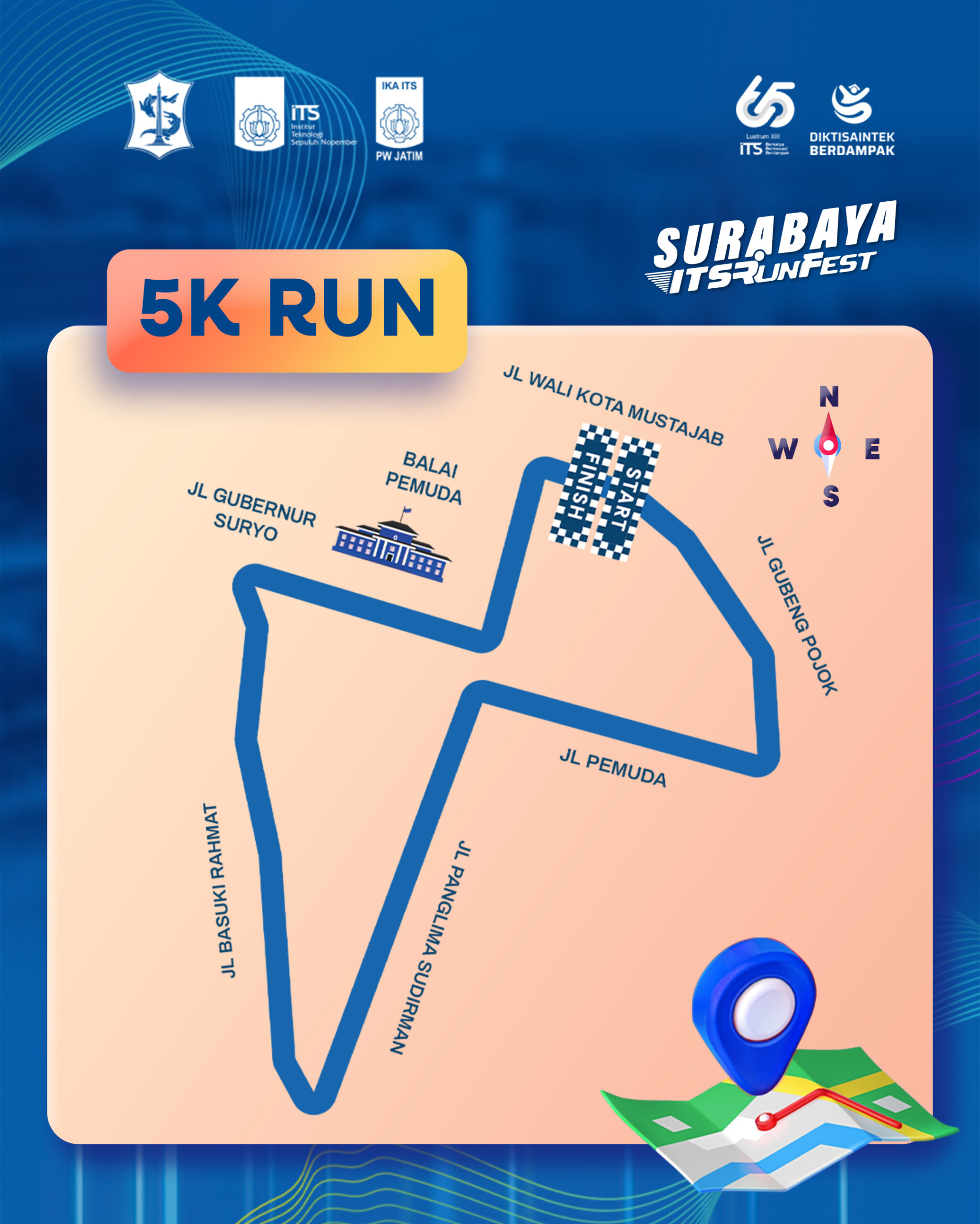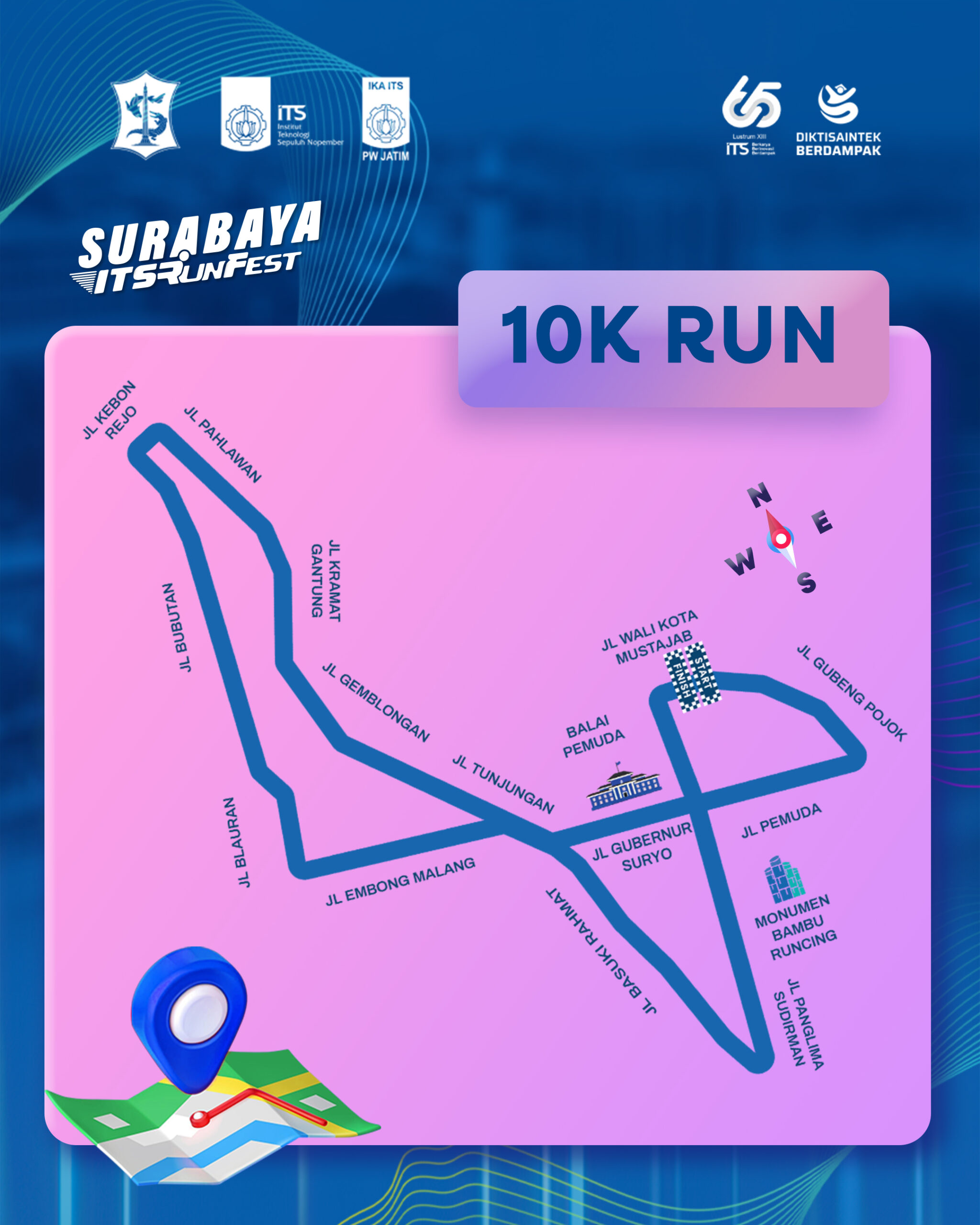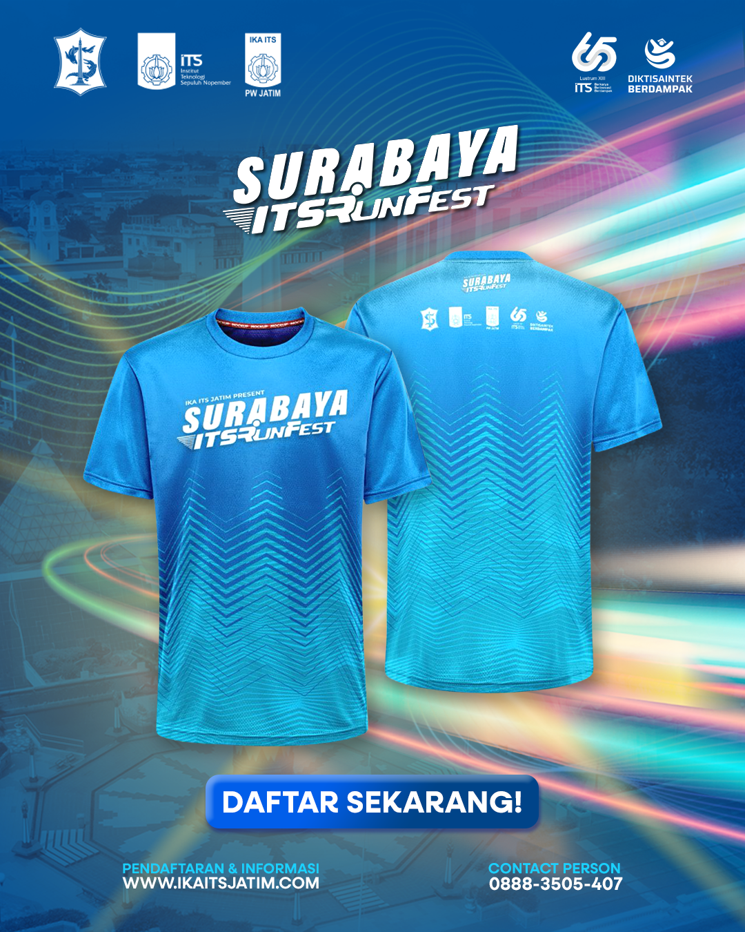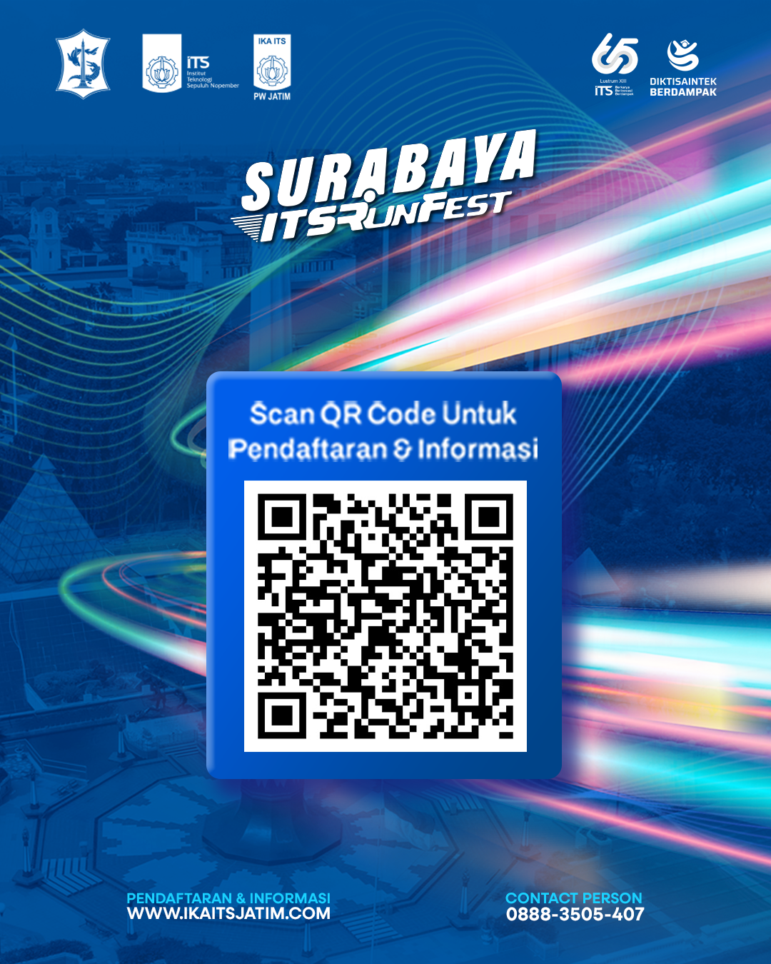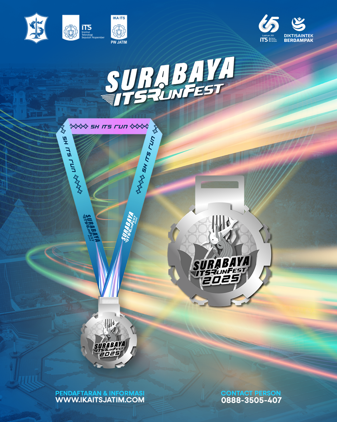More than just a sports event, Surabaya ITS Run Fest 2025 offers a joyful and healthy running experience. With 2K, 5K, and 10K Fun Run categories, participants of all ages and backgrounds can enjoy a lively, positive atmosphere while running through the heart of Surabaya.