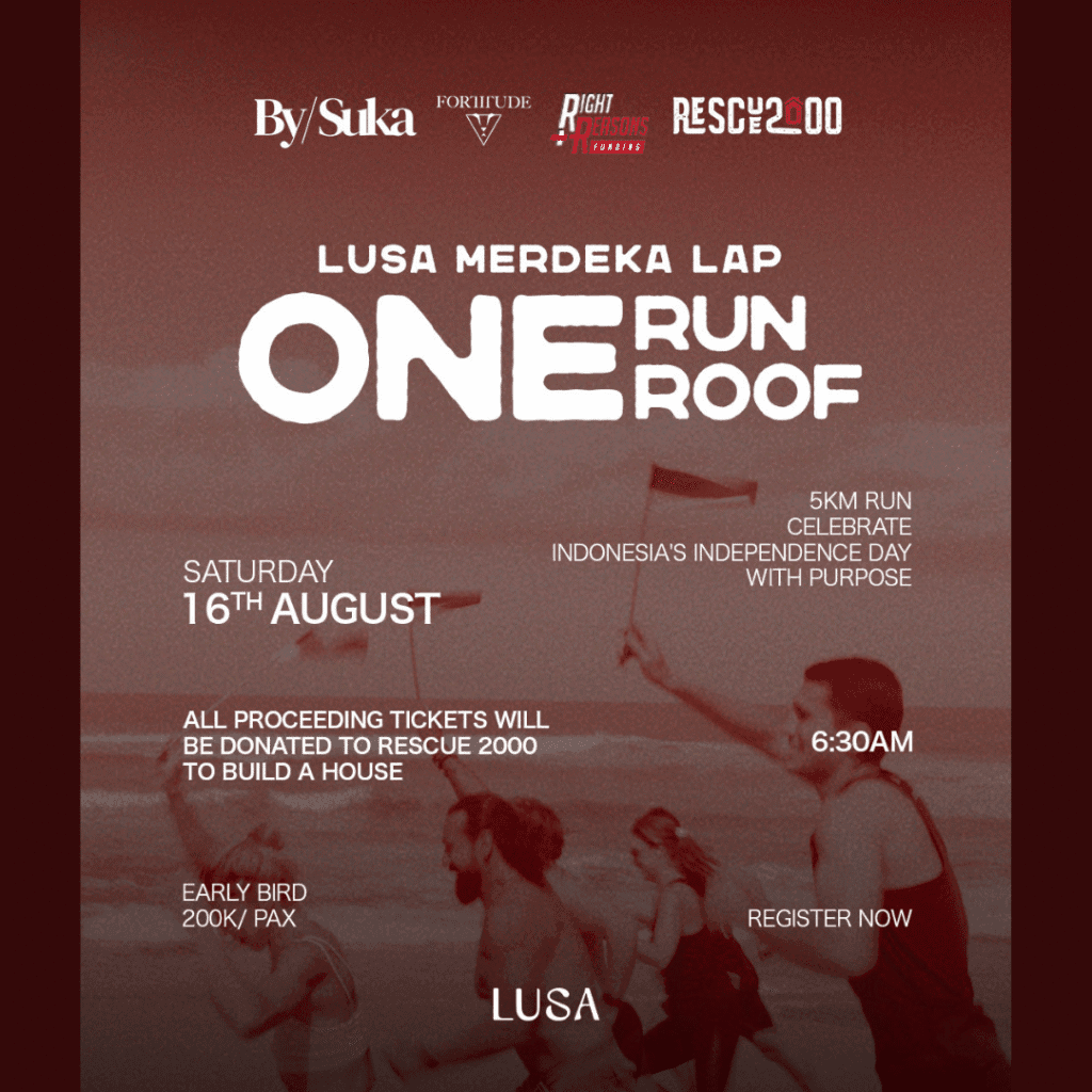 Lusa Merdeka Lap 2025 hadir sebagai acara lari tim sejauh 5 kilometer yang unik dan penuh semangat kemerdekaan. Setiap tim terdiri dari dua orang dan akan menempuh rute mulai dari Lusa by Suka melewati Canggu Shortcut hingga menuju pantai Batu Belig dan Berawa. Tidak sekadar berlari, peserta akan disambut dengan tantangan seru khas perayaan kemerdekaan Indonesia, seperti lomba makan kerupuk, balap karung, dan memindahkan kelereng dengan sendok. Semua ini menjadi bagian dari selebrasi Hari Kemerdekaan Indonesia yang tak hanya meriah, tetapi juga menyatukan semangat kebersamaan dan kegembiraan.