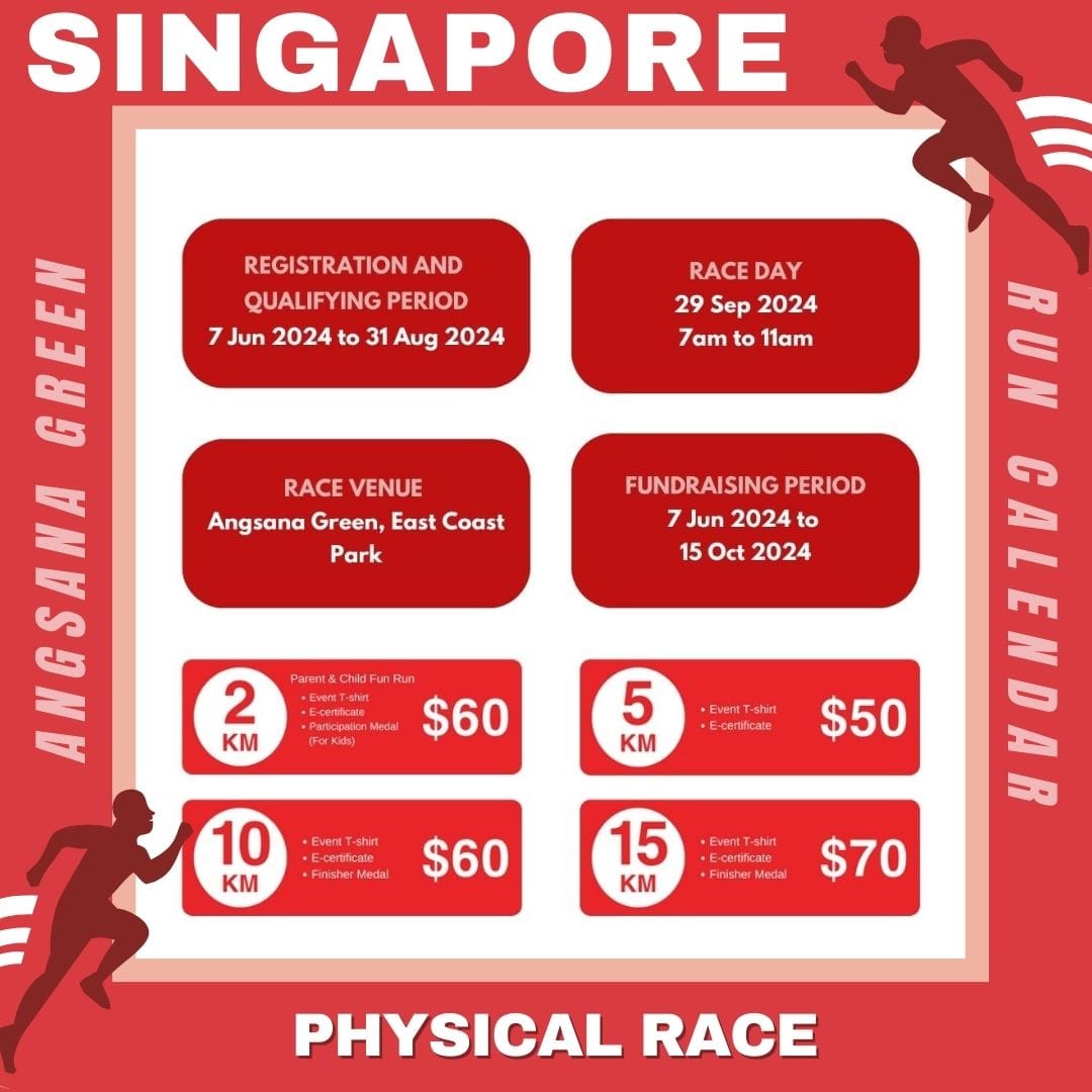 Celebrate 60 years of the Singapore Cancer Society with the Race Against Cancer on 29th September at Angsana Green, East Coast Park! Register by 31st August for physical races (2KM Parent-Child Fun Run, 5KM Fun Run, 10KM Race, 15KM Race) and by 28th September for virtual races (21KM, 42KM) Sign up individually or with a team. Stand with the cancer community—No One Fights Cancer Alone.