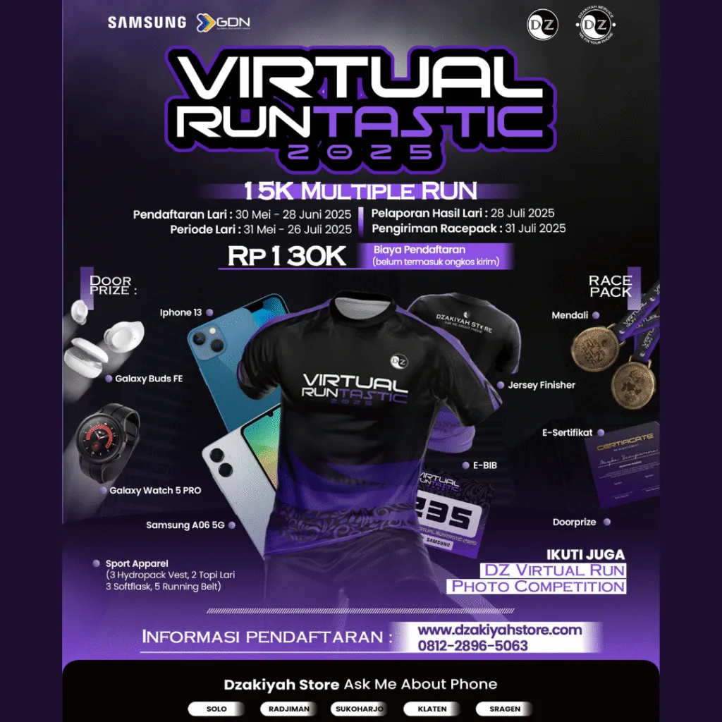 DZ Virtual Runtastic is an initiative organized by Dzakiyah Store to encourage the Indonesian community to maintain an active lifestyle in pursuit of better health and overall well-being. Through this event, Dzakiyah Store aims to promote physical activity—particularly running—as a simple yet impactful way to stay fit.