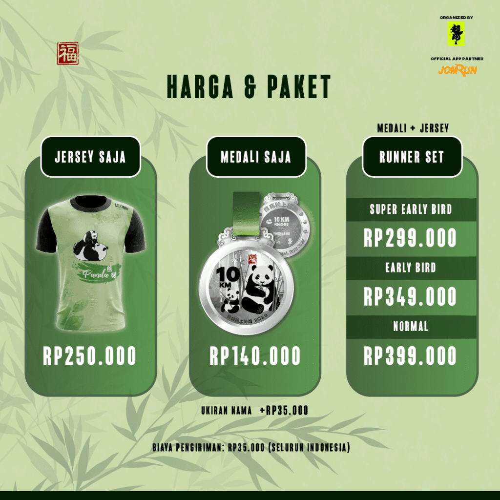 The Panda Virtual Run 2022 – Indonesia ran from April 22 to June 30, 2022, giving participants the freedom to run anytime and anywhere. Registration was open until June 29, 2022, and runners could complete their distance in multiple sessions. To officially finish the event, they had to submit their results by June 30, 2022.